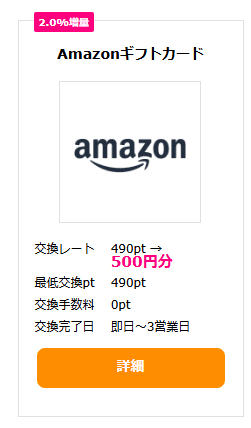 他の人気のあるポイントサイト・モッピーでもAmazonギフトカードへの交換は可能ですが、交換レートに違いがあります。
