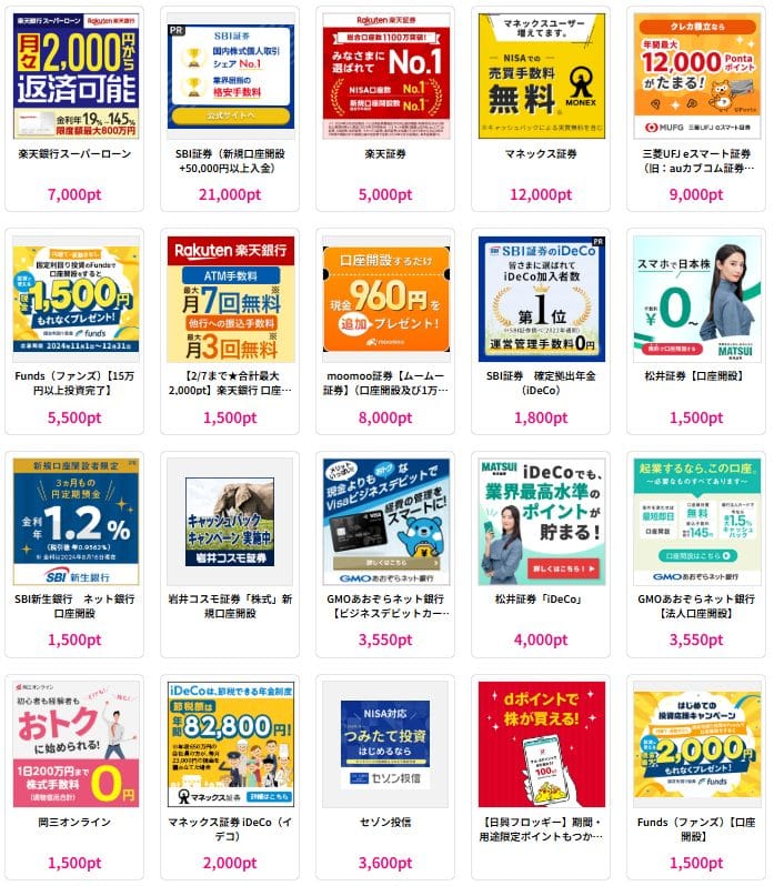 たとえば銀行口座を開設してもポイントが受け取れますよ。