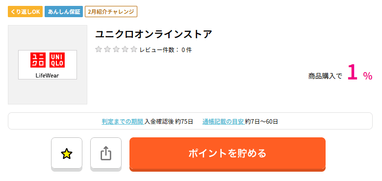 「ポイントを貯める」ボタンを押すとユニクロ公式のサイトに切り替わるので、そのままお買い物をするだけです。