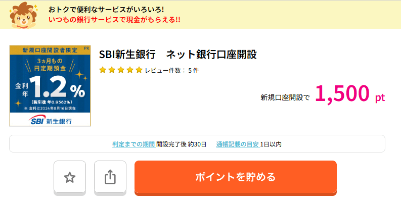 ネット銀行に口座を作るだけで1500ポイントがもらえるんんだね!